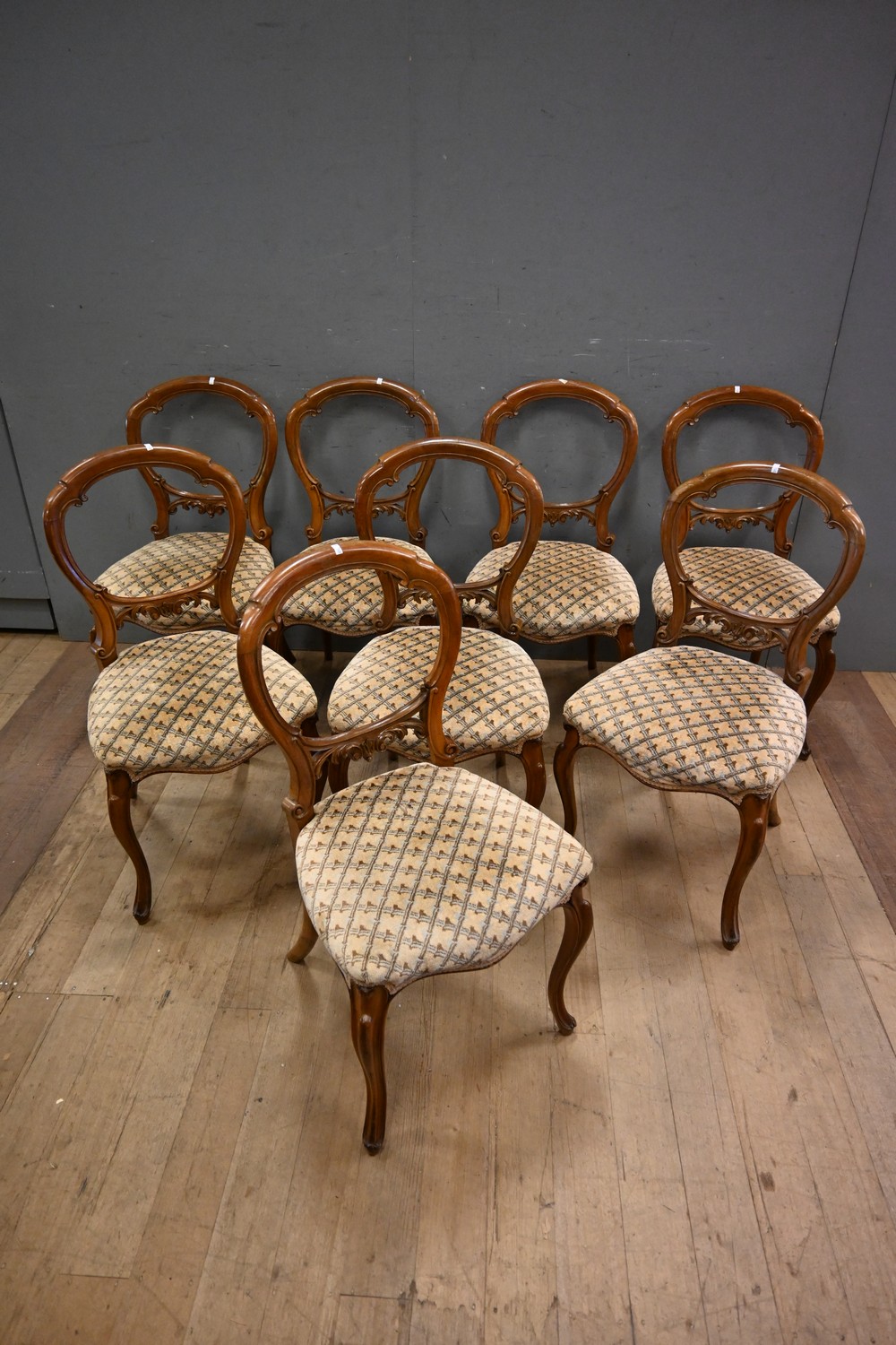 A SET OF EIGHT FRENCH MAHOGANY DINING CHAIRS (A/F) (89H X 46W X 53D CM) (LEONARD JOEL DELIVERY SIZE: LARGE)