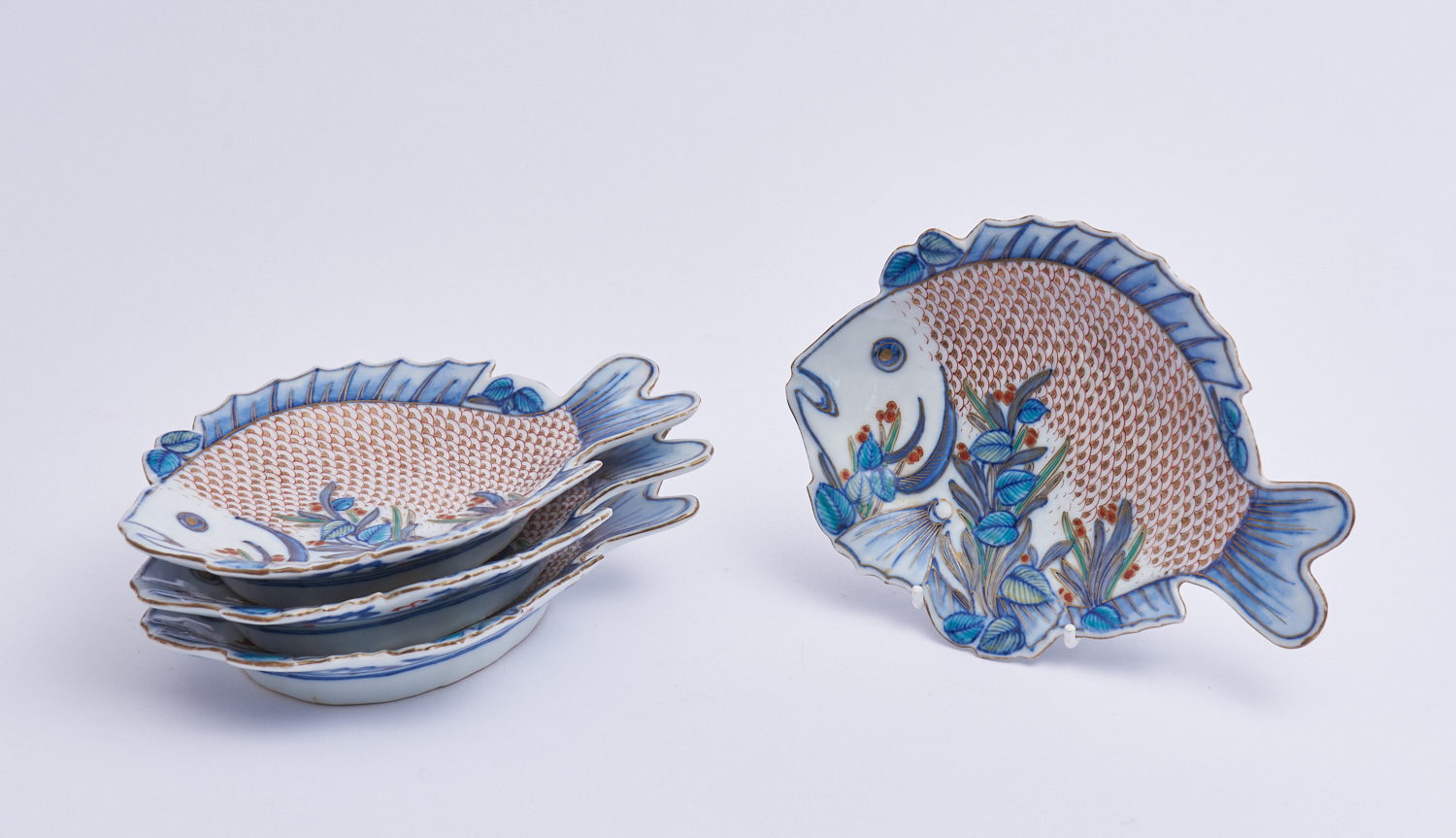 A SET OF FOUR JAPANESE ARTIA FISH SHAPED DISHES W.20CM, LEONARD JOEL LOCAL DELIVERY: SMALL