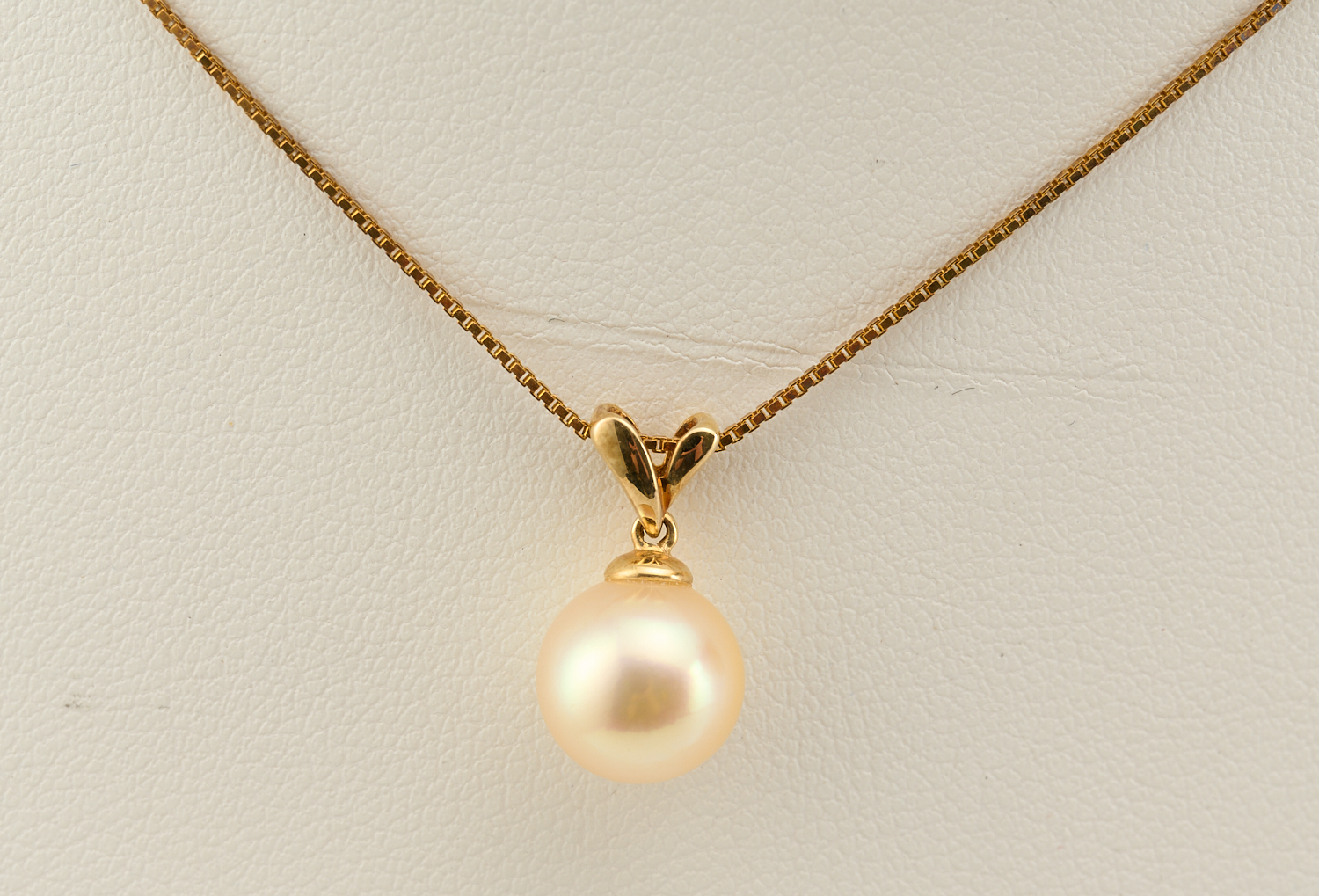 A SOUTH SEA PEARL PENDANT 18CT GOLD, THE PEARL MEASURING APPROXIMATELY 8.46MM, TO A GOLD PLATED CHAIN