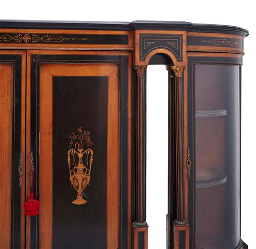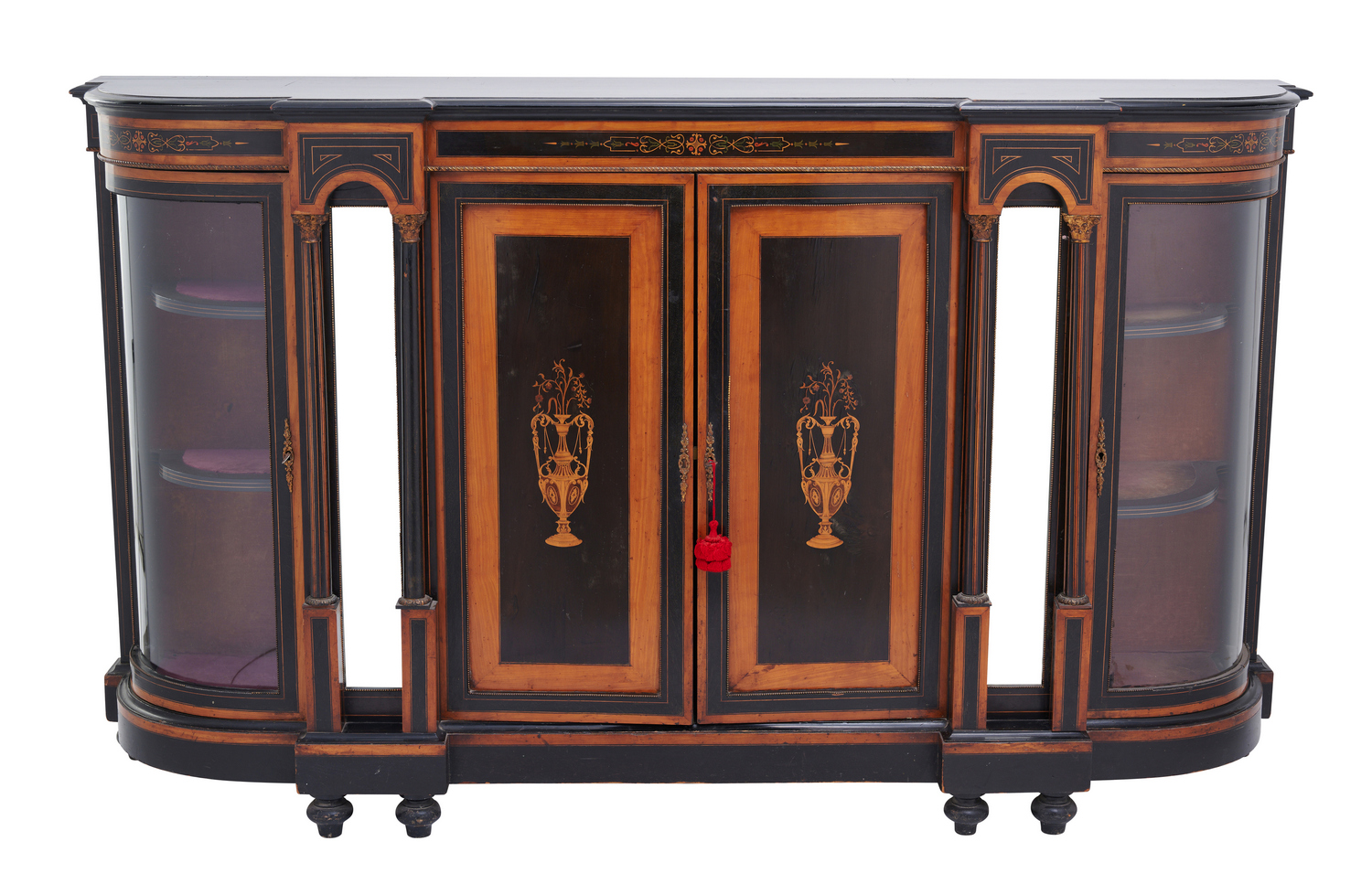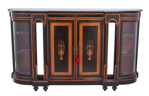 A VICTORIAN SATINWOOD AND EBONISED SIDE CABINET