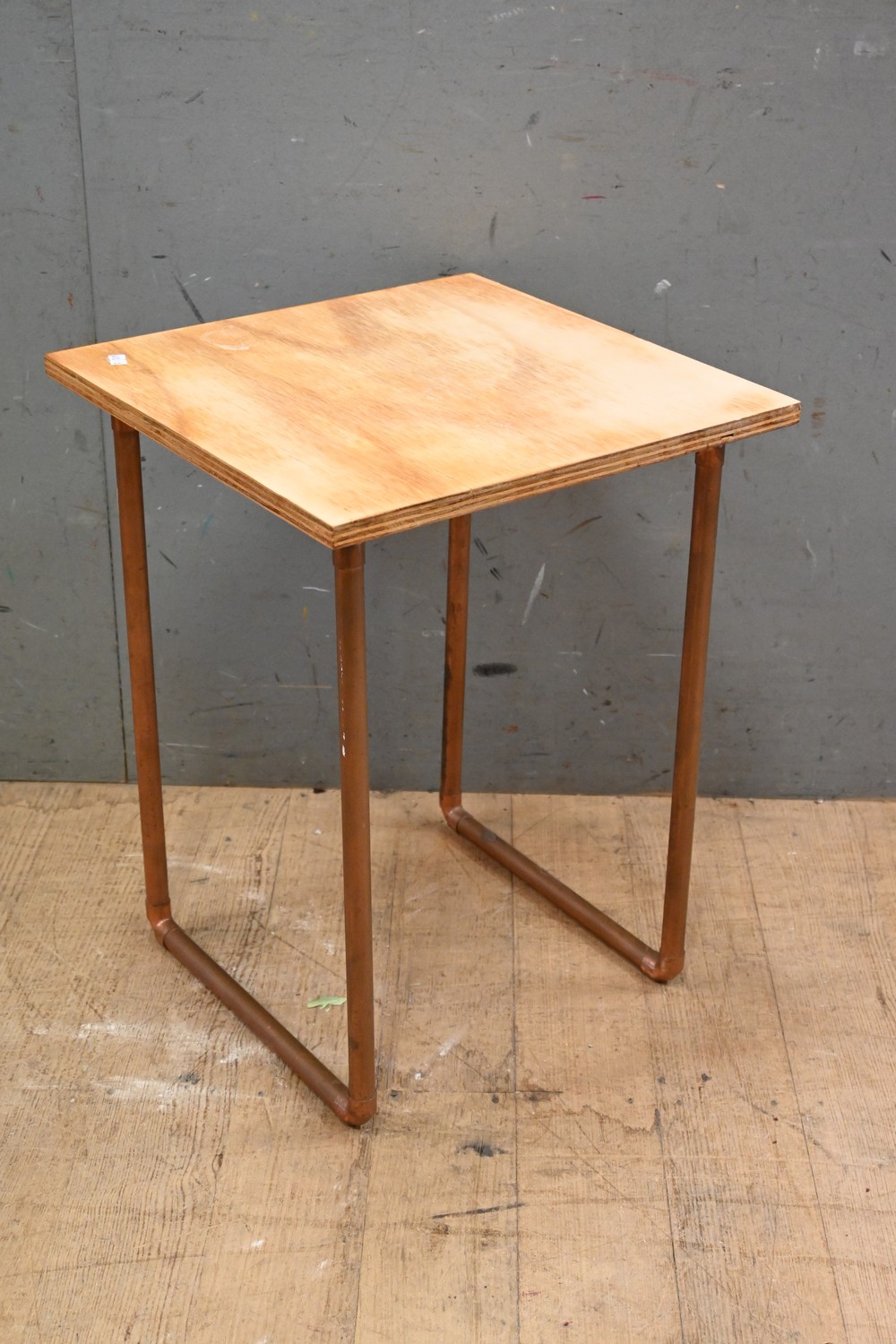 A PLYWOOD AND BRASS SIDE TABLE (A/F) (H51 X W40 X D40 CM) (LEONARD JOEL DELIVERY SIZE: SMALL)