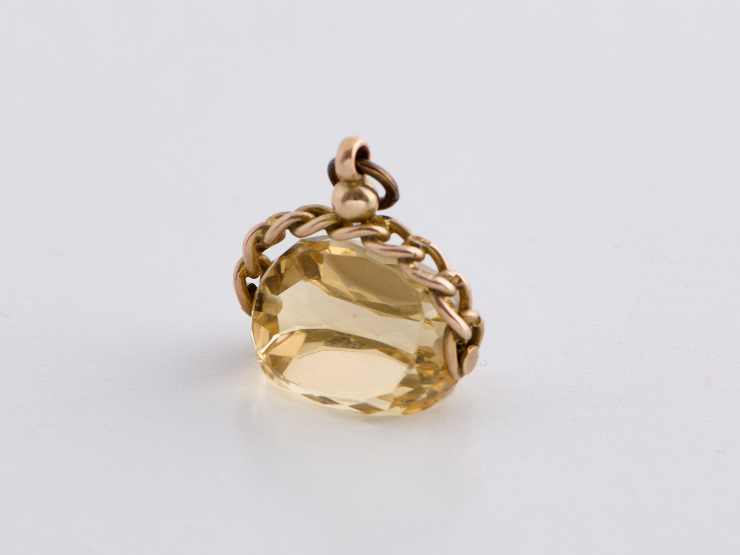 A CITRINE SPINNER PENDANT IN 9CT GOLD, THE STONE MEASURING APPROXIMATELY 20 X 15MM, 7.40GMS