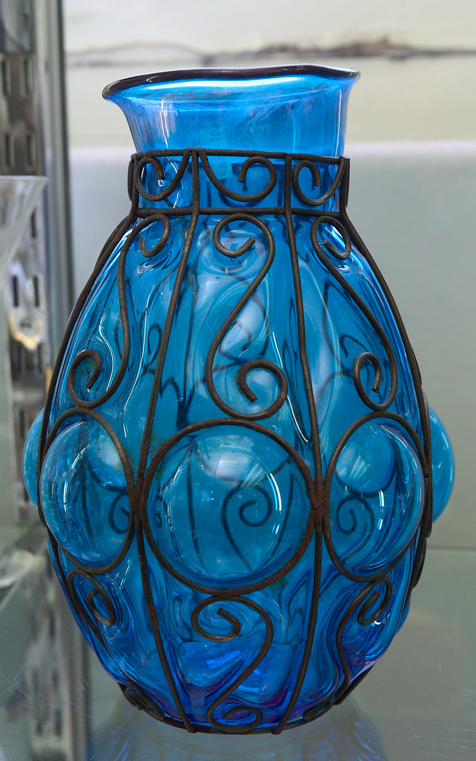 A VENETIAN BLUE CAGED GLASS VASE H.25CM, LEONARD JOEL LOCAL DELIVERY: SMALL