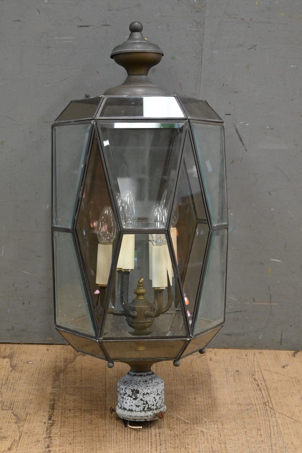 A COPPER AND GLASS LANTERN LIGHT FITTING (A/F) (73H X 29D CM) (LEONARD JOEL DELIVERY SIZE: LARGE)