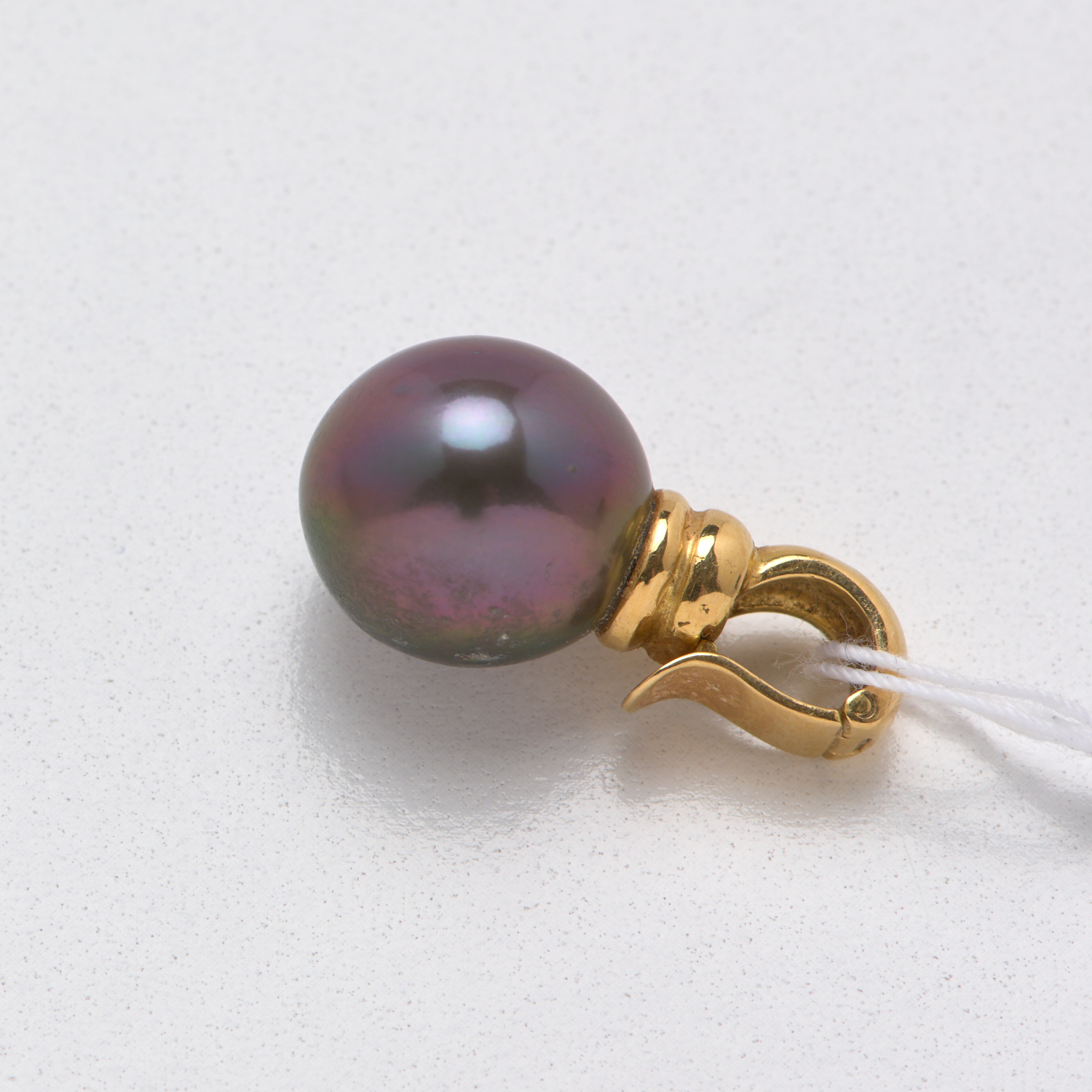 A TAHITIAN PEARL PENDANT ENHANCER IN 18CT GOLD, THE PEARL MEASURING APPROXIMATELY 13.79MM