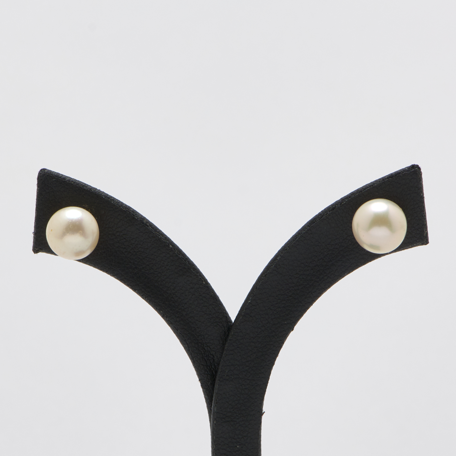 A PAIR OF 7.85MM PEARL STUD EARRINGS, TO POST AND BUTTERFLY FITTINGS