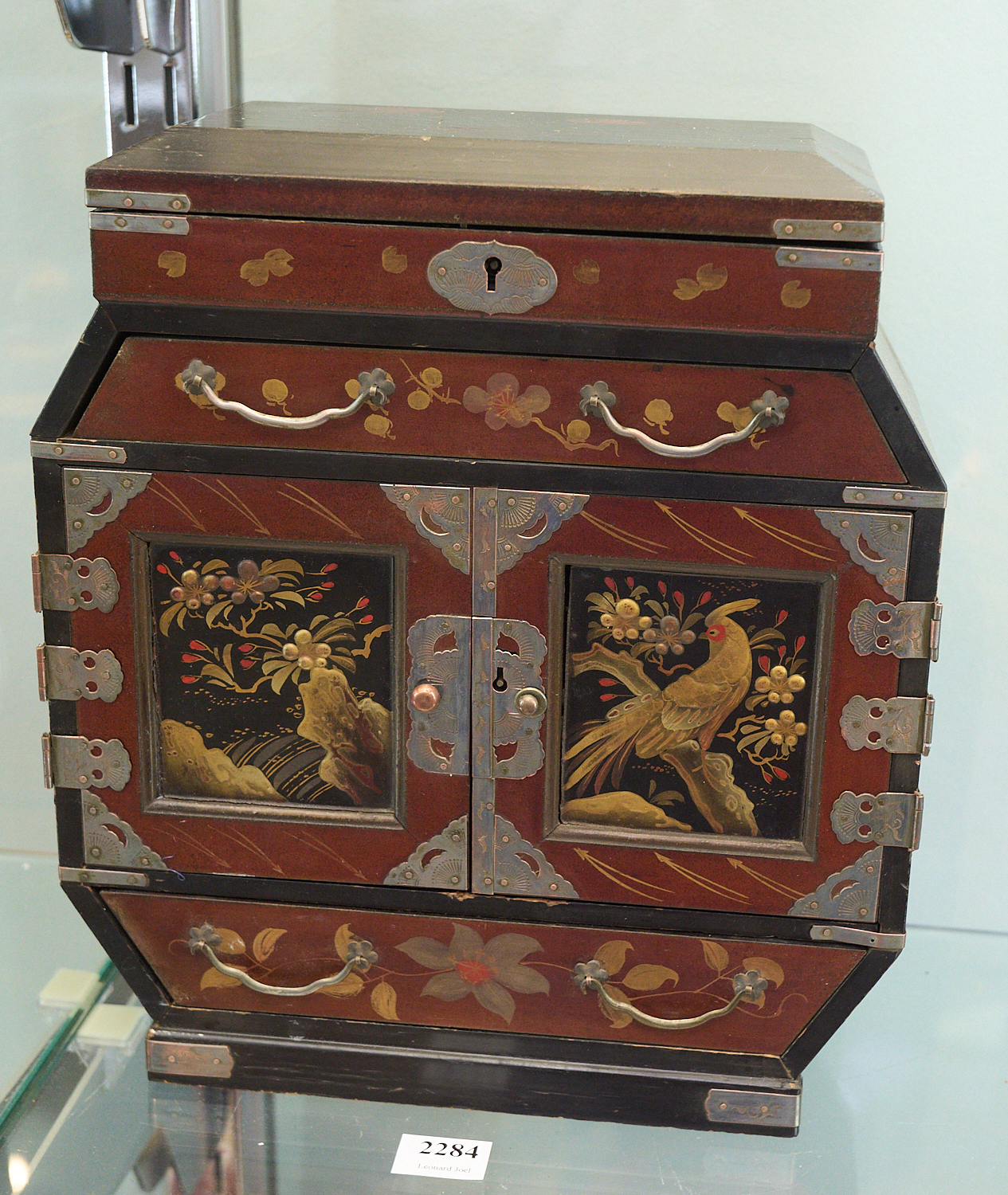 A JAPANESE LACQUERED JEWELLERY CABINET WITH DRAWERS H.28CM X W24CM X D.10.5CM, LEONARD JOEL LOCAL DELIVERY: MEDIUM