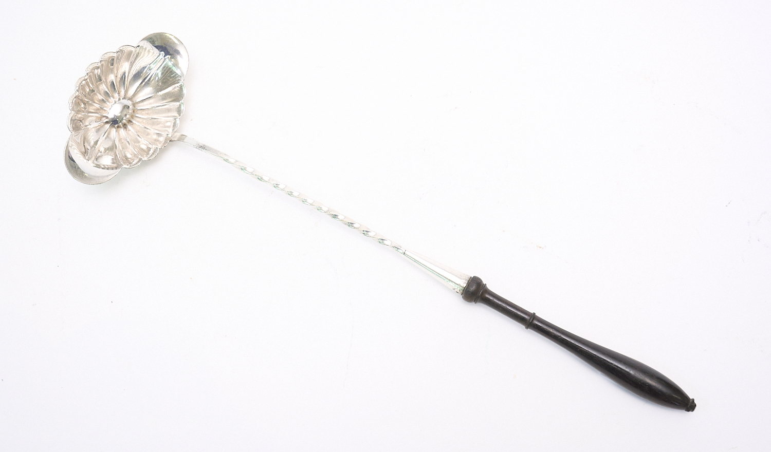 A FRENCH CHRISTOFLE SILVER PLATE AND ROSEWOOD HANDLED SERVING TODDY LADLE L.36CM, LEONARD JOEL LOCAL DELIVERY: SMALL