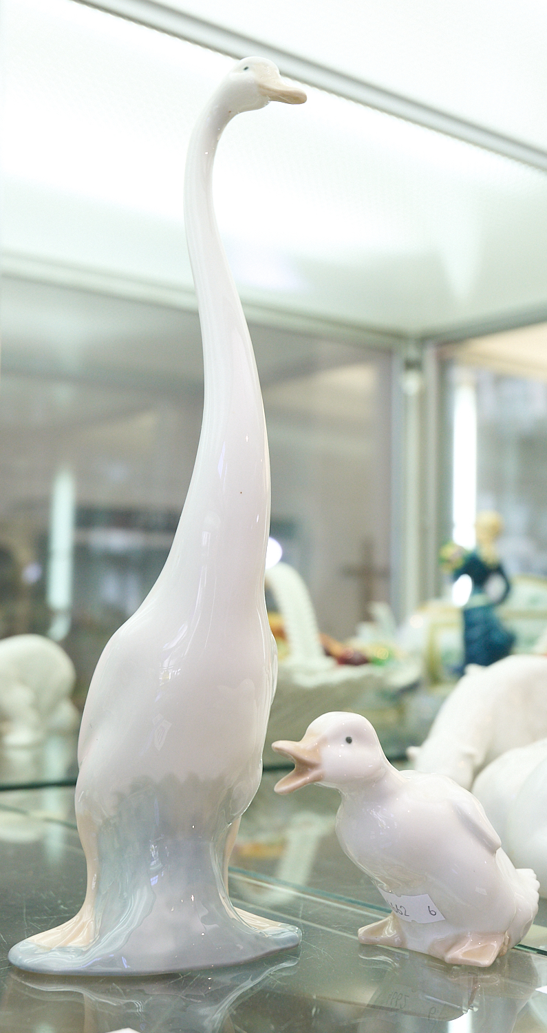 TWO NAO FIGURINES OF DUCKS H.30CM (LARGEST), LEONARD JOEL LOCAL DELIVERY: SMALL