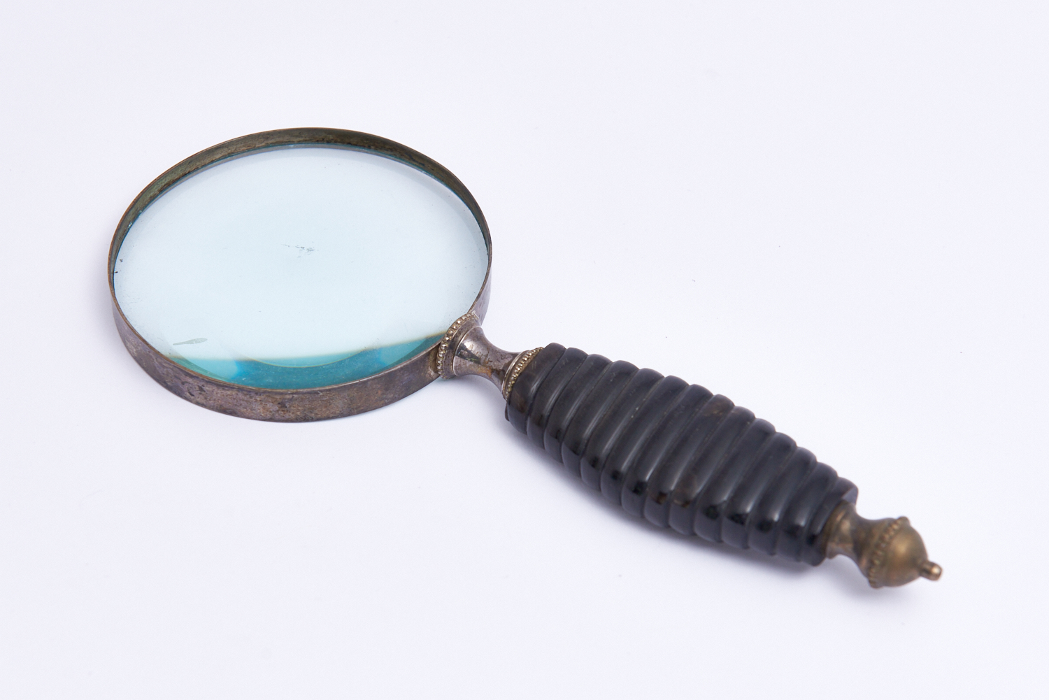 A MAGNIFYING GLASS WITH EBONY HANDLE H.24CM X DIA.10CM, LEONARD JOEL LOCAL DELIVERY: SMALL