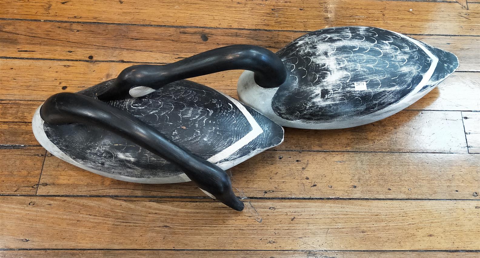 TWO FOLK ART STYLE WOODEN GEESE L.80CM, LEONARD JOEL LOCAL DELIVERY: MEDIUM