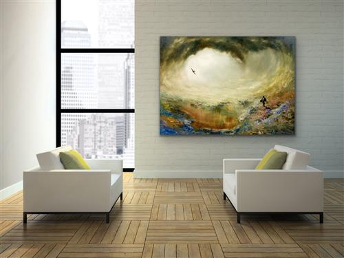 A very small area of paint loss in evident in the top hand corner. No other faults to report. Stretched with no additional framing.