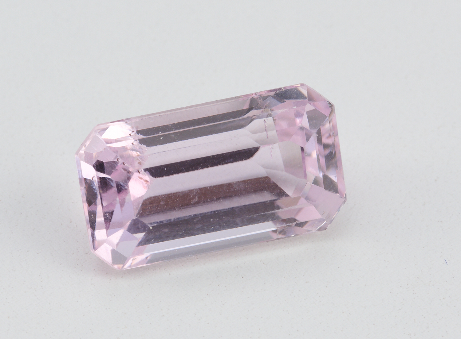 A LOOSE RECTANGULAR STEP CUT KUNZITE WEIGHING 10CTS, 15.88MM X 9.03MM X 7.98MM