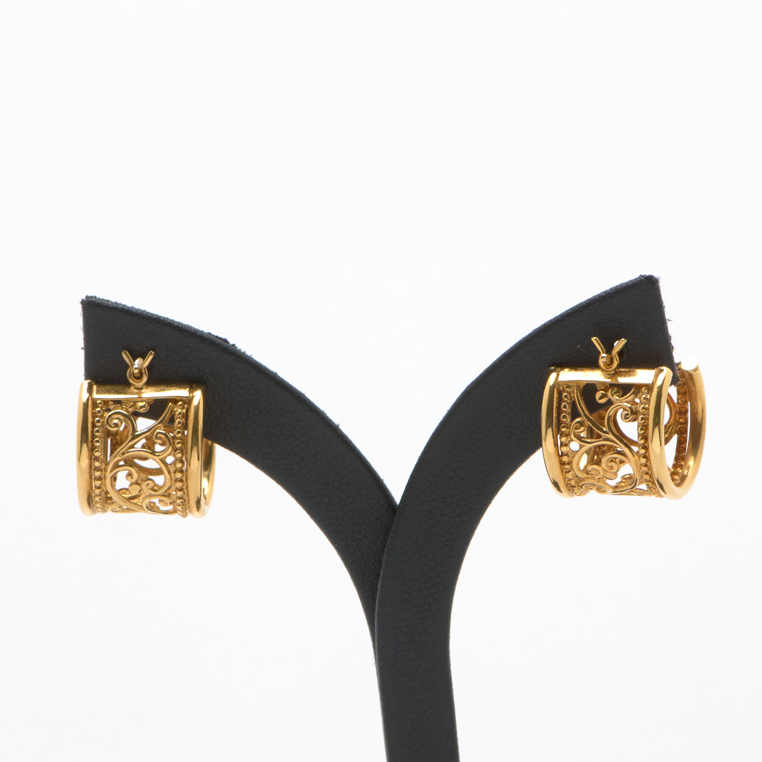 A PAIR OF HOOP EARRINGS IN 18CT GOLD TO POST FITTINGS, DIAMETER 18MM, 3.6GMS