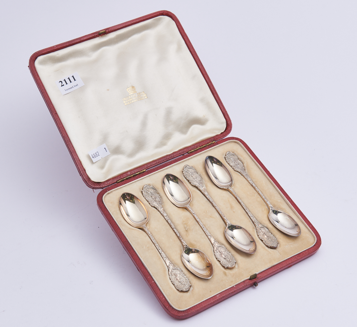 A CASED SET OF STERLING SILVER TEASPOONS WITH CHERUB DECORATION, LEONARD JOEL LOCAL DELIVERY: SMALL