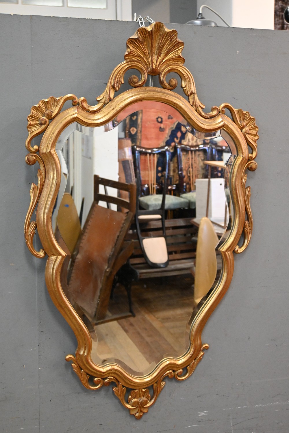 AN ITALIAN GILTWOOD SHELL ADORNED SCALLOPED BEVELLED MIRROR (108H X 67W CM) (LEONARD JOEL DELIVERY SIZE: LARGE)