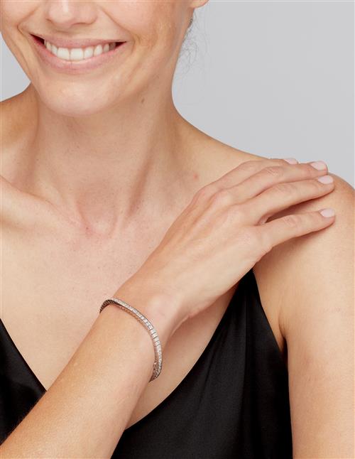 Composed of a line of 63 channel-set princess-cut diamonds completed by a concealed box clasp, the diamonds together weighing approximately 6.30 carats, mounted in 18ct white gold, length 175mm.