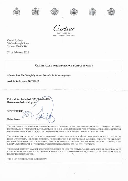 Accompanied by a Cartier certificate, valuation and box.