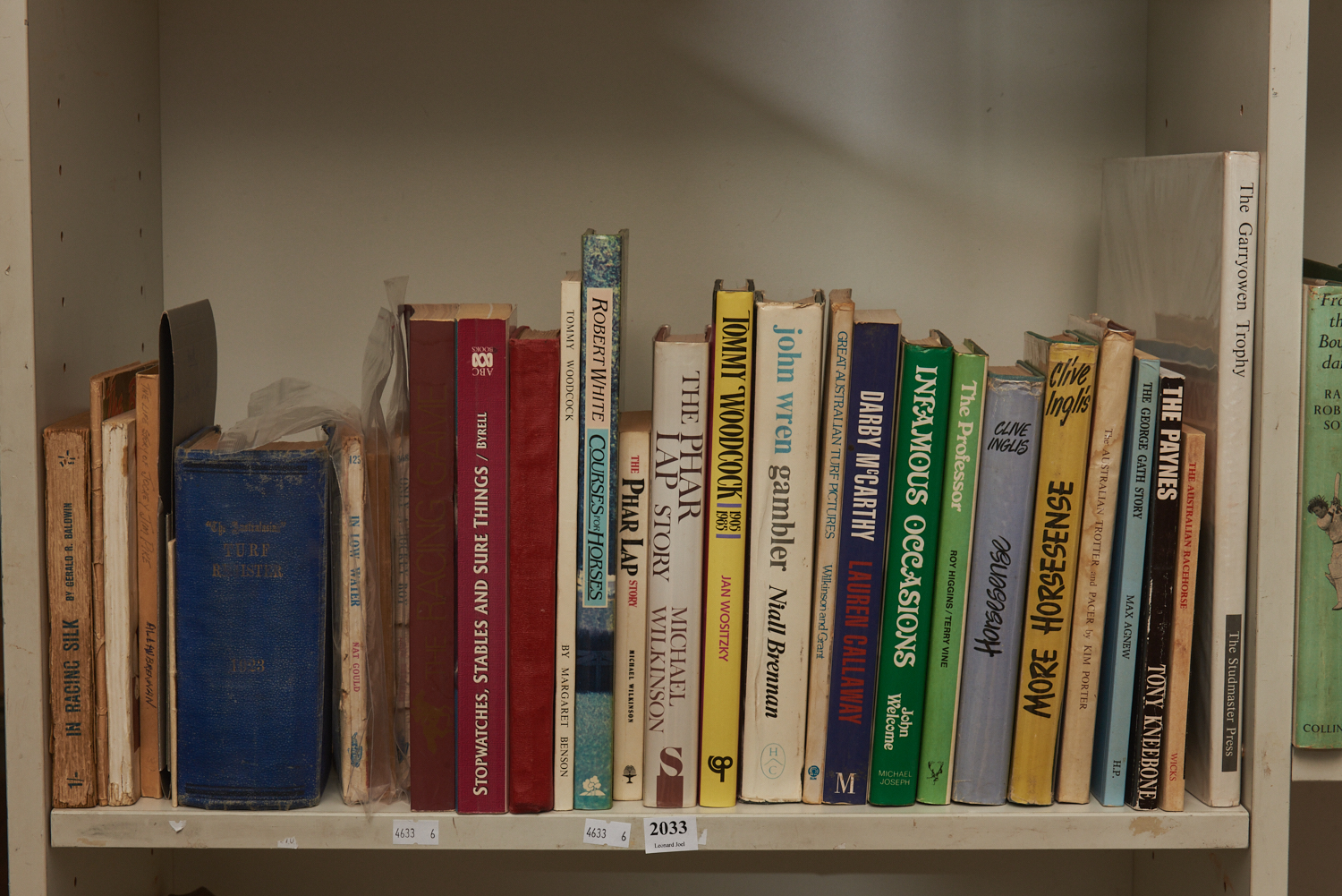 A SHELF OF BOOKS PERTAINING TO HORSE RACING INCLUDING THE LIFE STORY OF JACKY JIM PIKE BY ALLAN BRENNAN, LEONARD JOEL LOCAL DELIVERY: MEDIUM