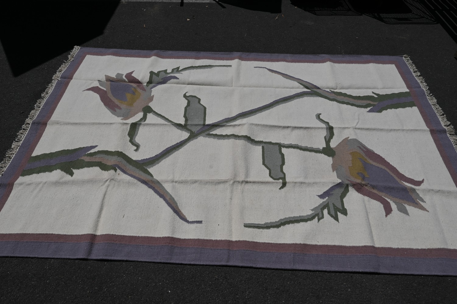 A 100% HANDWOVEN WOOLEN COLOURFAST INDIAN DHURRIE IN DESERT FLORAL DESIGN, REVERSABLE (280 X 179 CM) (LEONARD JOEL DELIVERY SIZE: LARGE)