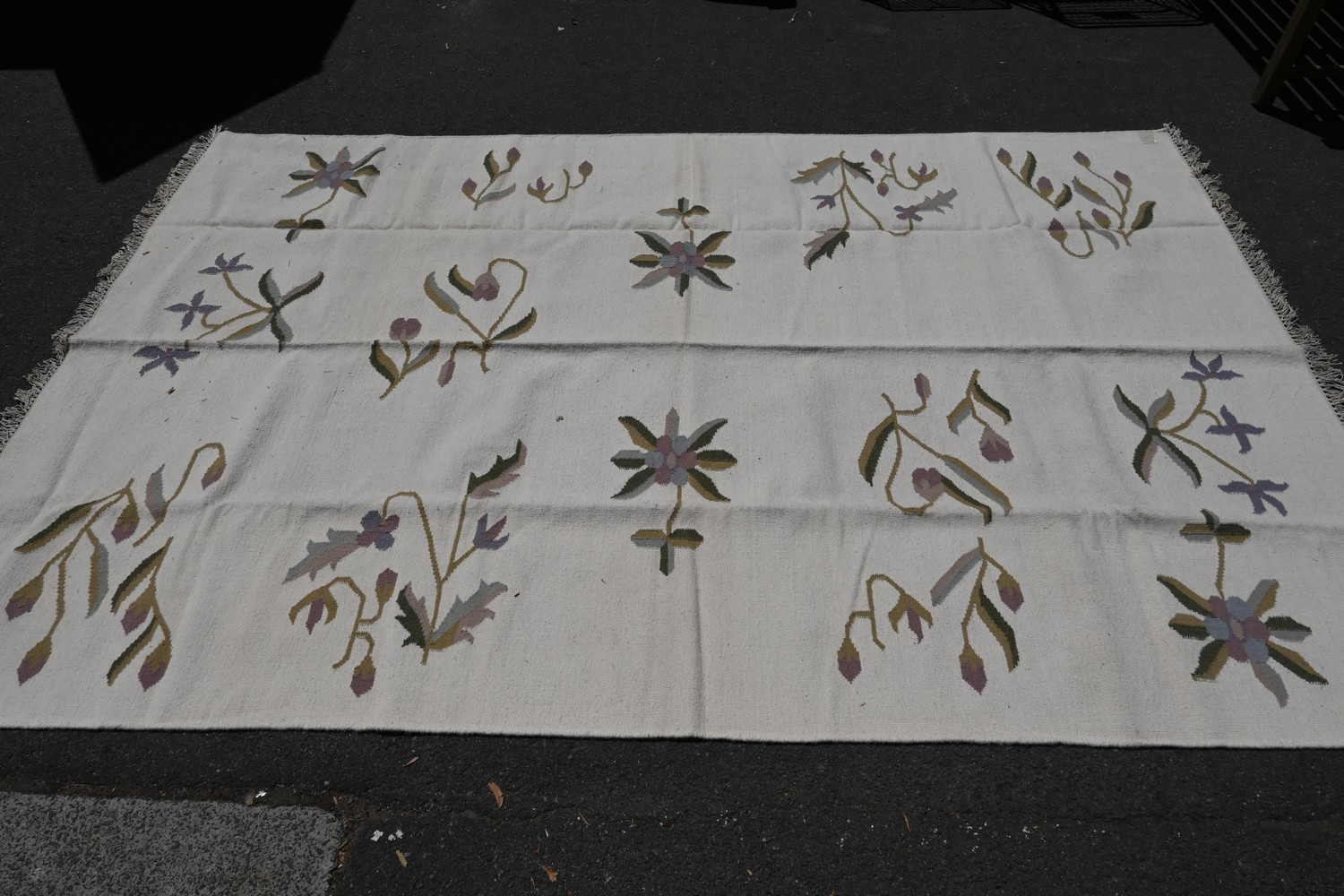 A 100% HANDWOVEN WOOLEN COLOURFAST INDIAN DHURRIE IN DESERT FLORAL DESIGN, REVERSABLE (307 X 195 CM) (LEONARD JOEL DELIVERY SIZE: LARGE)