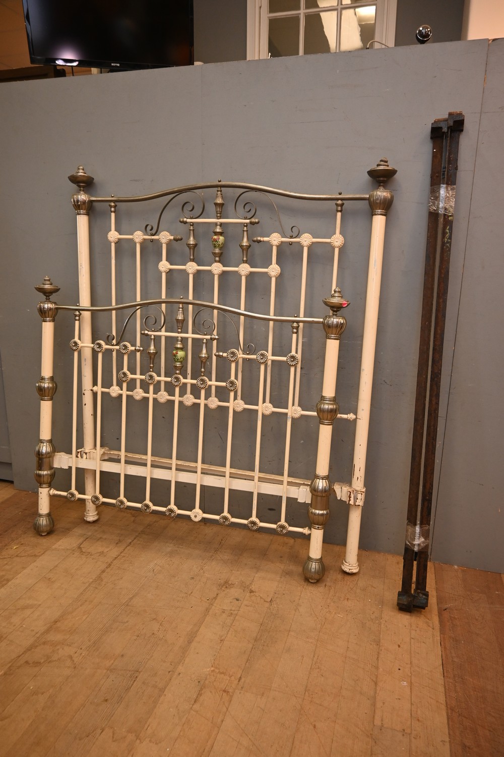 AN ANTIQUE CAST IRON BED (WITH RAILS ) ( A/F) ( 172H X 142W CM) (LEONARD JOEL DELIVERY SIZE: X -LARGE)