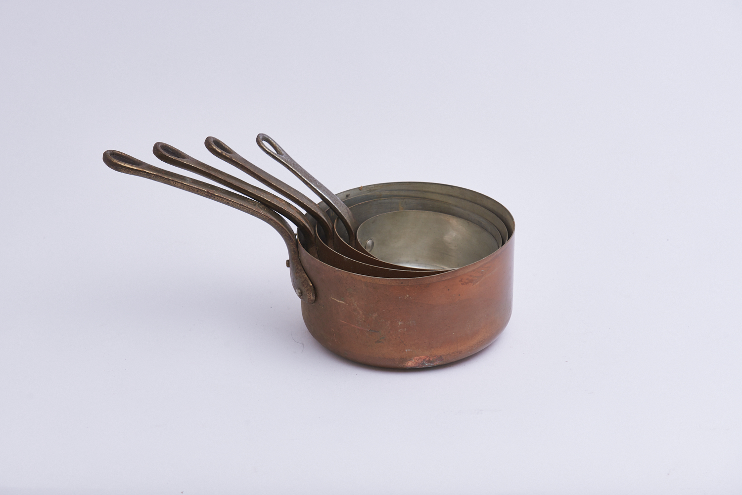 FOUR FRENCH COPPER SAUCEPANS DIA.18CM (LARGEST), LEONARD JOEL LOCAL DELIVERY: MEDIUM
