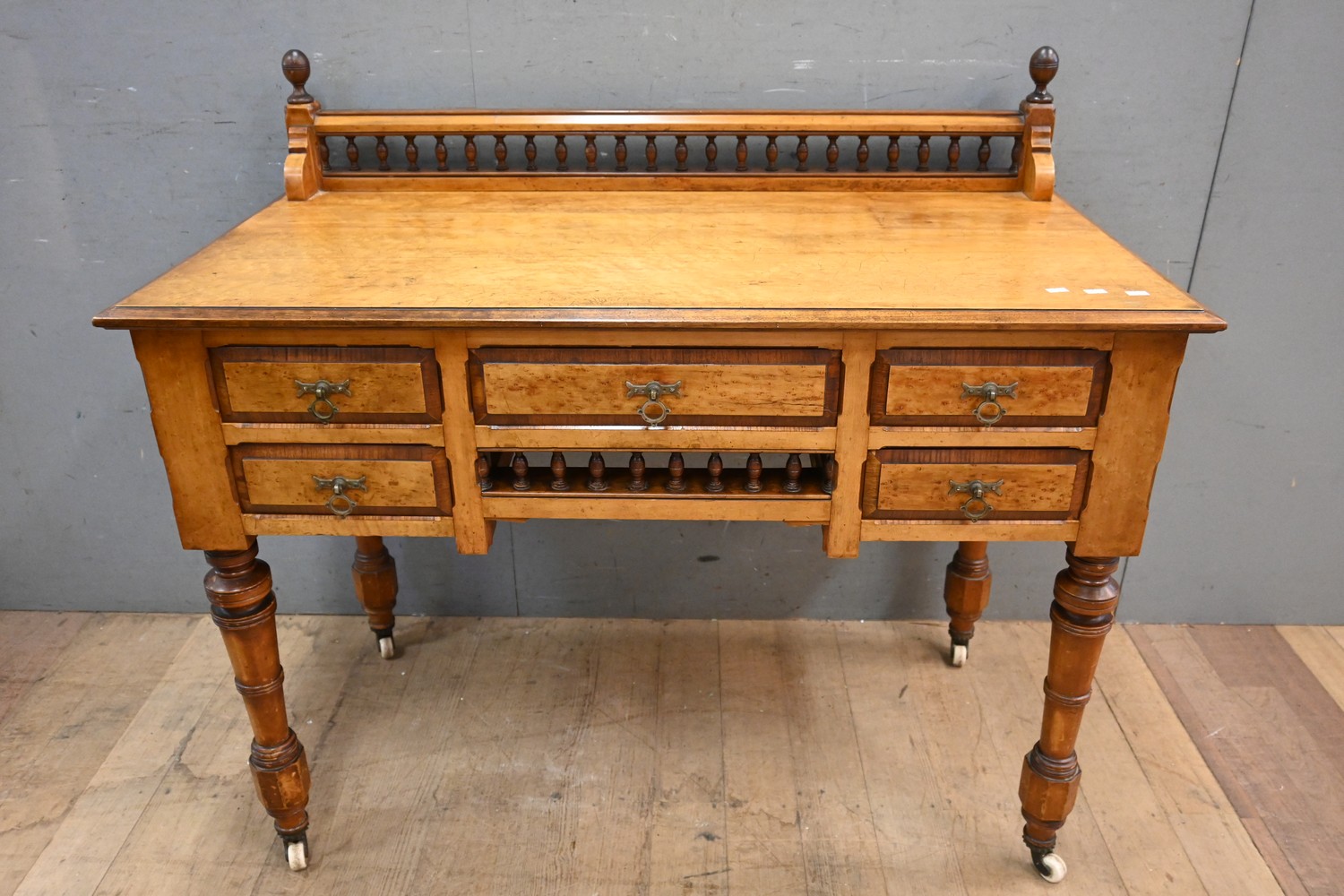 A BIRDS EYE MAPLE EDWARDIAN DESK (A/F) (112H X 115W X 58D CM) (PLEASE NOTE THIS HEAVY ITEM MUST BE REMOVED BY CARRIERS AT THE CUSTOMER'S EXPENSE. LEONARD JOEL STAFF CANNOT ASSIST CARRYING THIS ITEM) (X-LARGE ITEM)