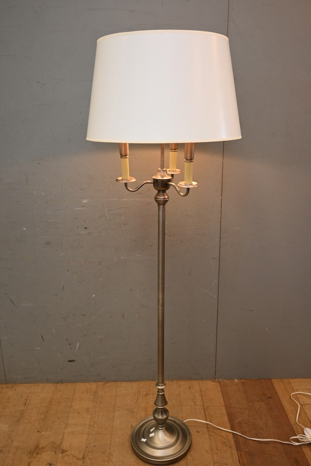 A CLASSICAL STYLE BRUSH COATED THREE BRANCH STANDARD LAMP (A/F) (H159 X D42 CM) (LEONARD JOEL DELIVERY SIZE: LARGE)