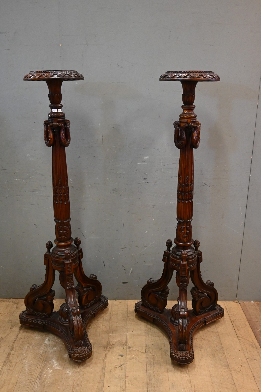 A PAIR OF LARGE TIMBER PEDESTALS (146H X 70D CM) (LEONARD JOEL DELIVERY SIZE: X-LARGE)