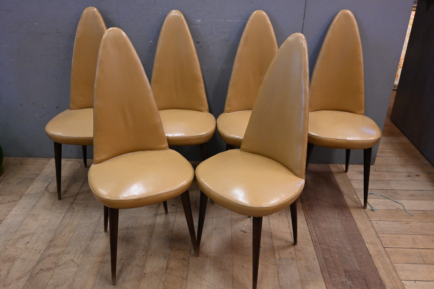 A SET OF SIX VITTORIO DASSIN DINING CHAIRS (A/F) (106H X 48W X 49D CM) (LEONARD JOEL DELIVERY SIZE: X-LARGE)