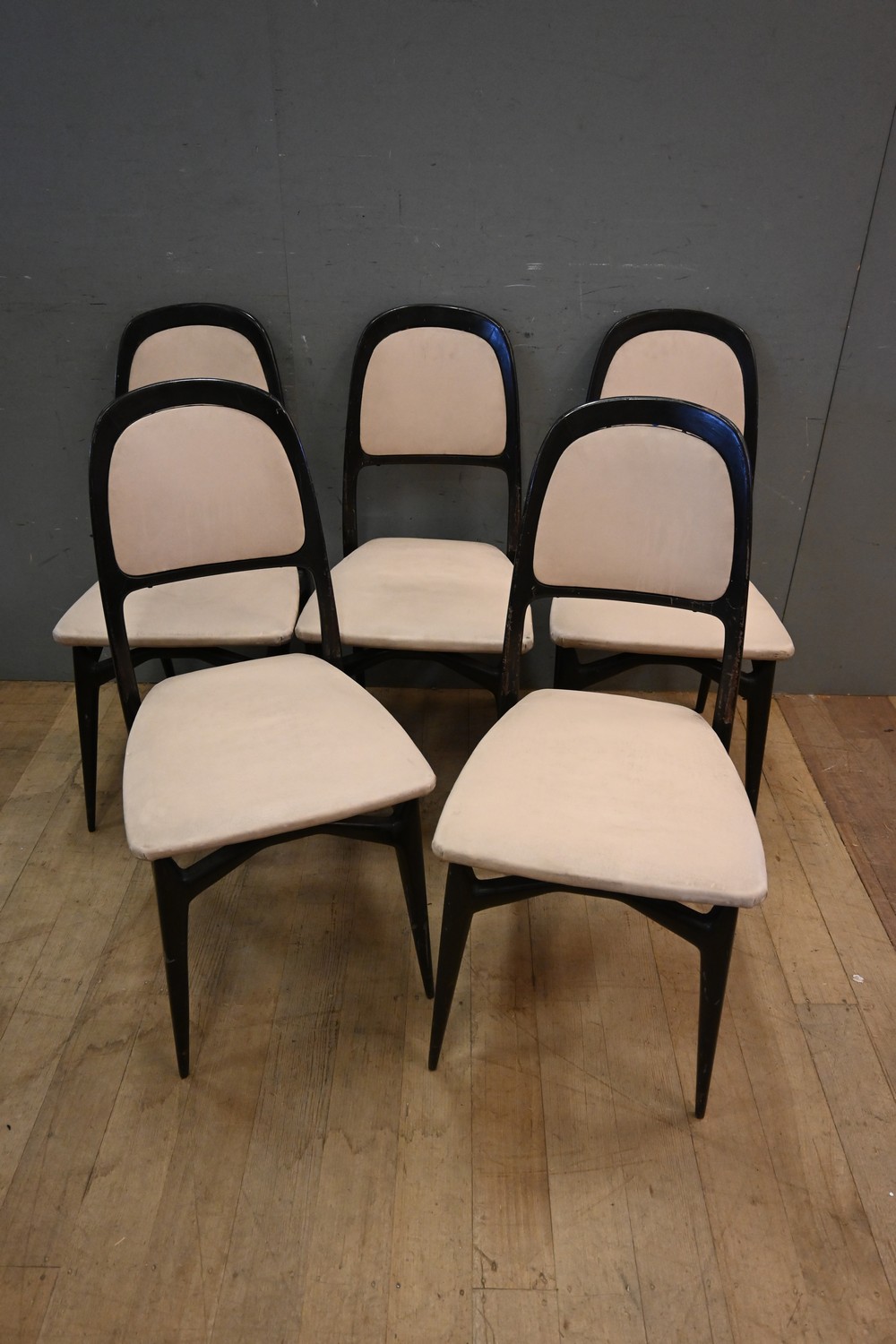 SET OF FIVE MID CENTURY ITALIAN DINING CHAIRS (A/F) (H92 X W44 X D54 CM) (LEONARD JOEL DELIVERY SIZE: LARGE)