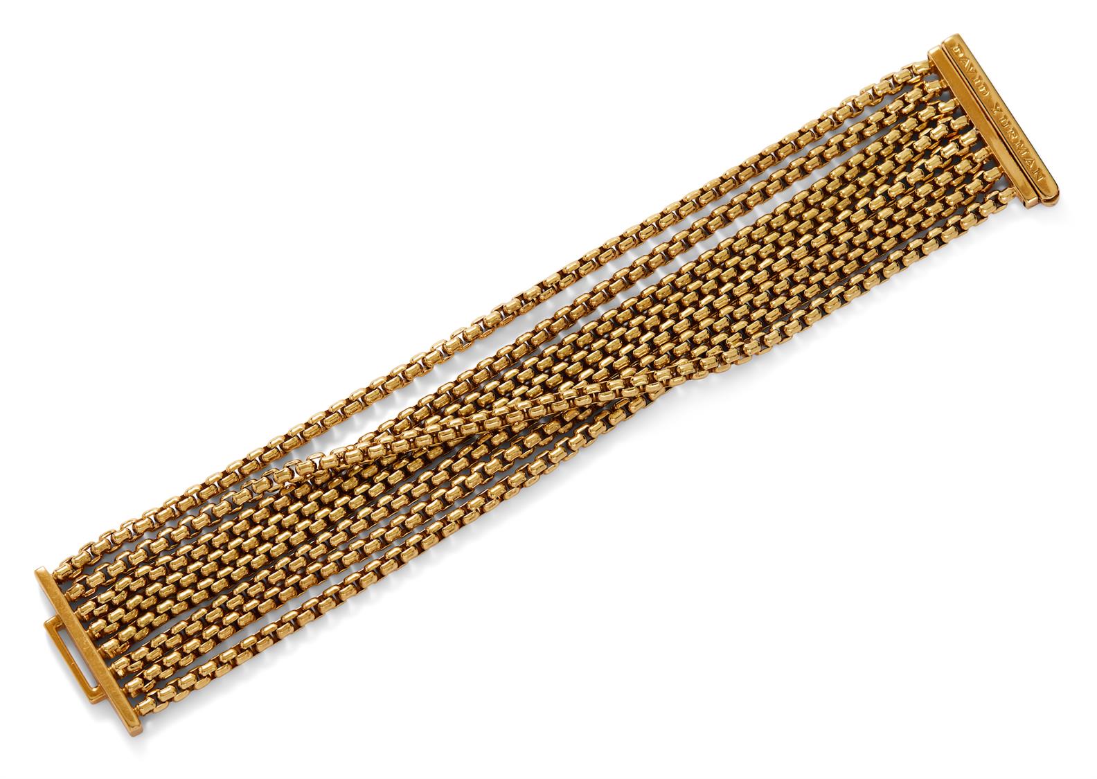 Modelled as a wide 35mm strap composed of eight strands of oval box links, clasp embossed DAVID YURMAN, gross weight 141.80 grams, length 175mm, maker's mark for David Yurman.