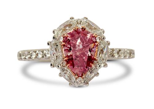 A SPECTACULAR FANCY VIVID PINK DIAMOND AND DIAMOND RING