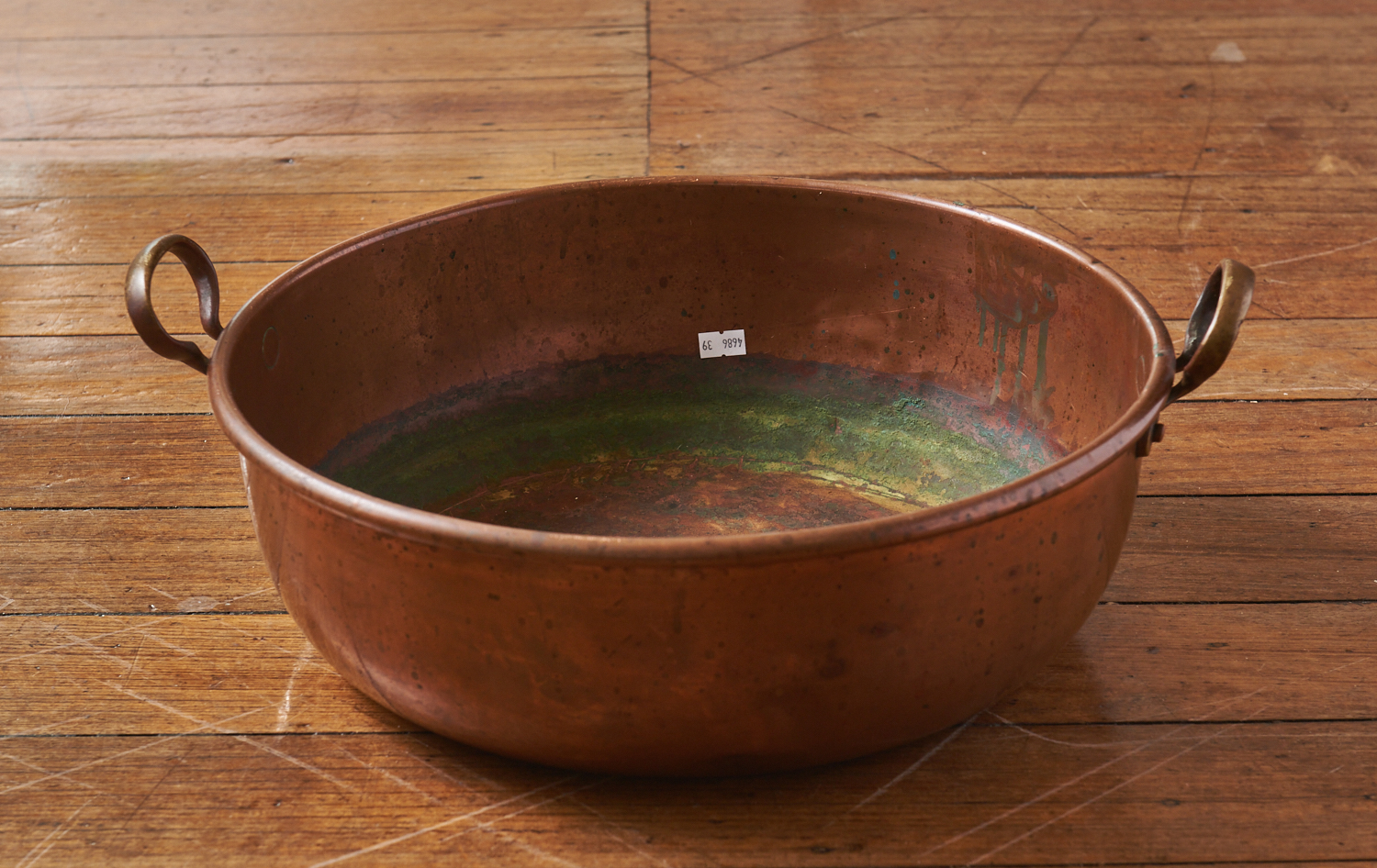 A COPPER PRESERVING POT WITH BRASS HANDLES, DIA.40CM, LEONARD JOEL LOCAL DELIVERY: MEDIUM