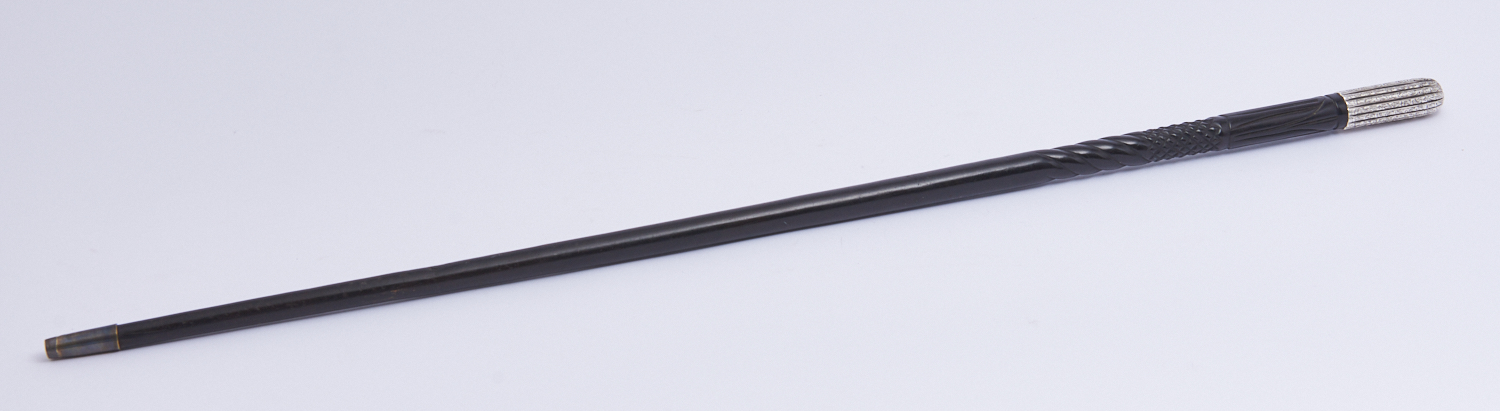 A VICTORIAN VINAIGRETTE HANDLED CARVED EBONY WALKING STICK, L.87CM, LEONARD JOEL LOCAL DELIVERY: SMALL