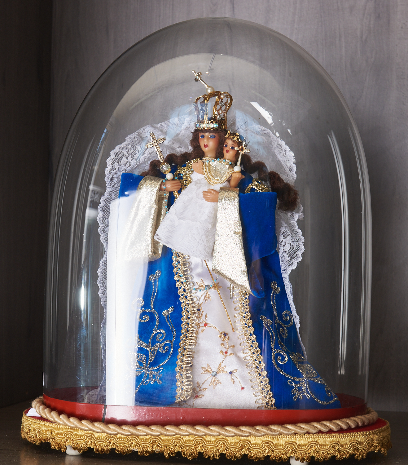 A RELIGIOUS FIGURE UNDER GILT WOOD BASED OVAL DOME, H.39CM, LEONARD JOEL LOCAL DELIVERY: MEDIUM