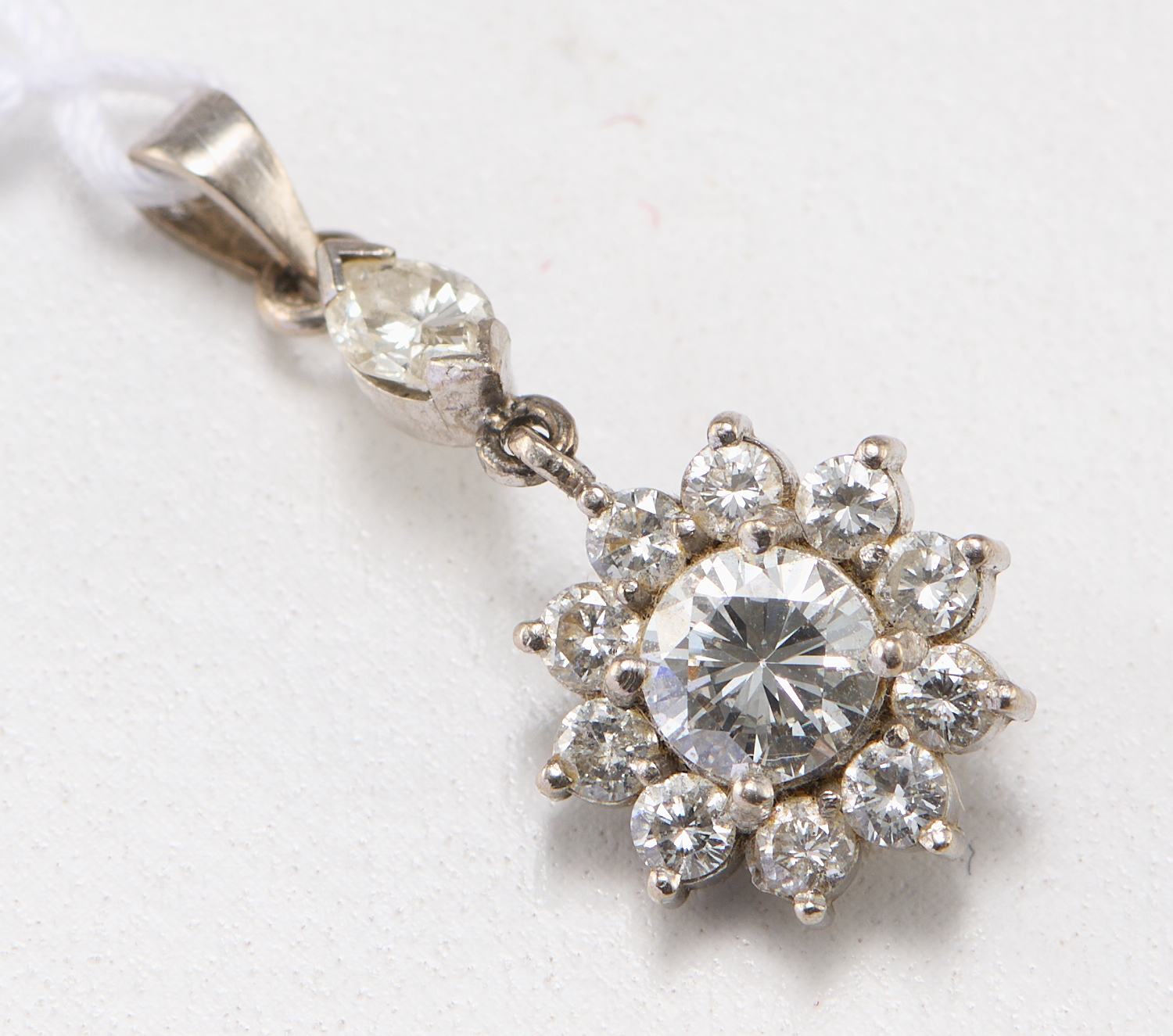 A DIAMOND SET PENDANT IN 14CT GOLD, LENGTH INCLUDING BAIL 23MM, 1.3GMS
