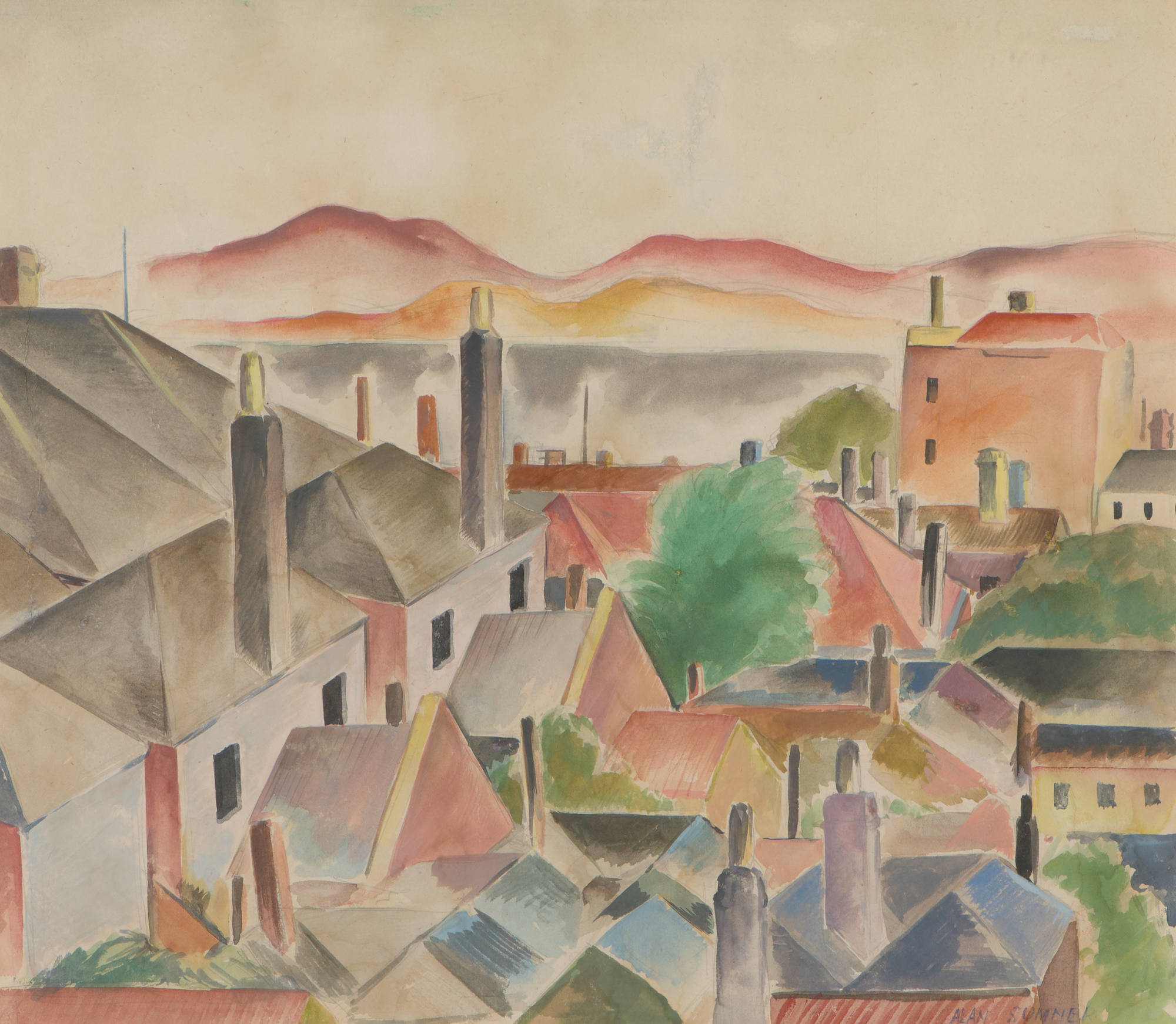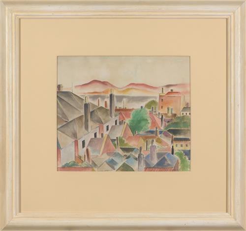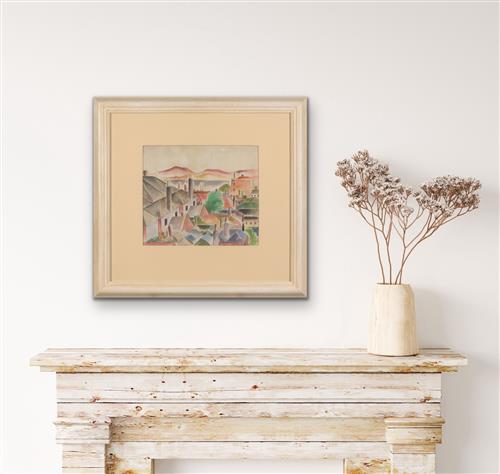 There is evidence of repair in the upper centre and left hand side. There is light cockling to the paper. Framed size is 65 x 68.5cm.