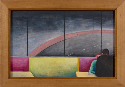 signed, titled and dated verso: N McKenna 1989 / "Café Scene"