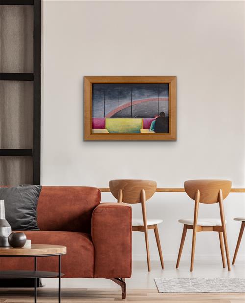 Overall in good condition. Natural grooves and textures to the plywood visible from beneath the paint's surface. Work appears to be in original frame, some marks, 43 x 61.5cm
