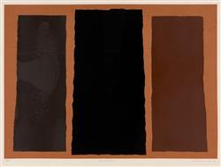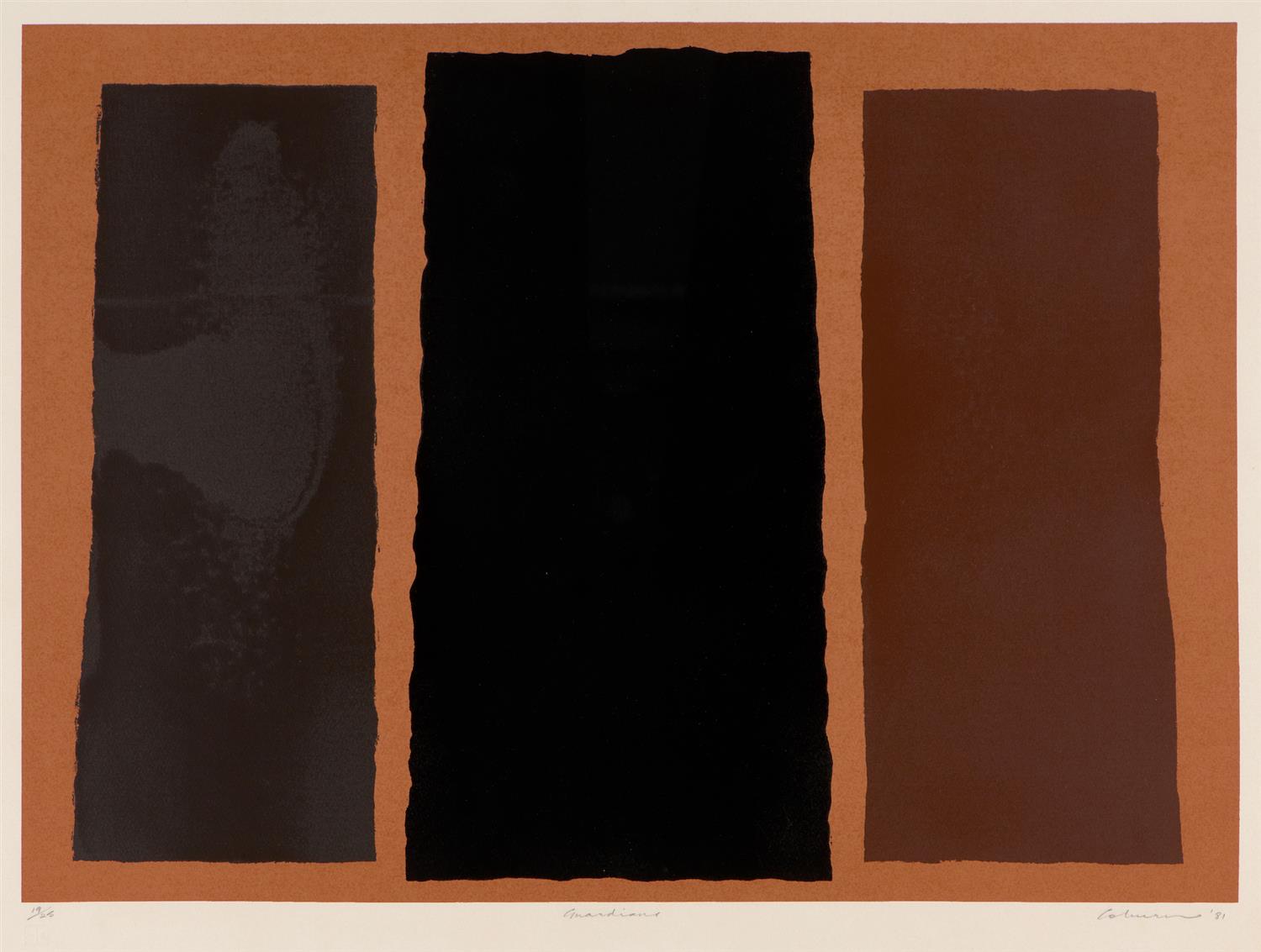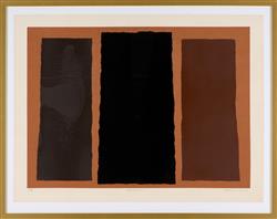 Work is in good condition overall. A inconsistency within the black pigment (within the far left panel) is present, resulting in a patch-like area of lighter black. Well framed measuring 70.5 x 90cm.