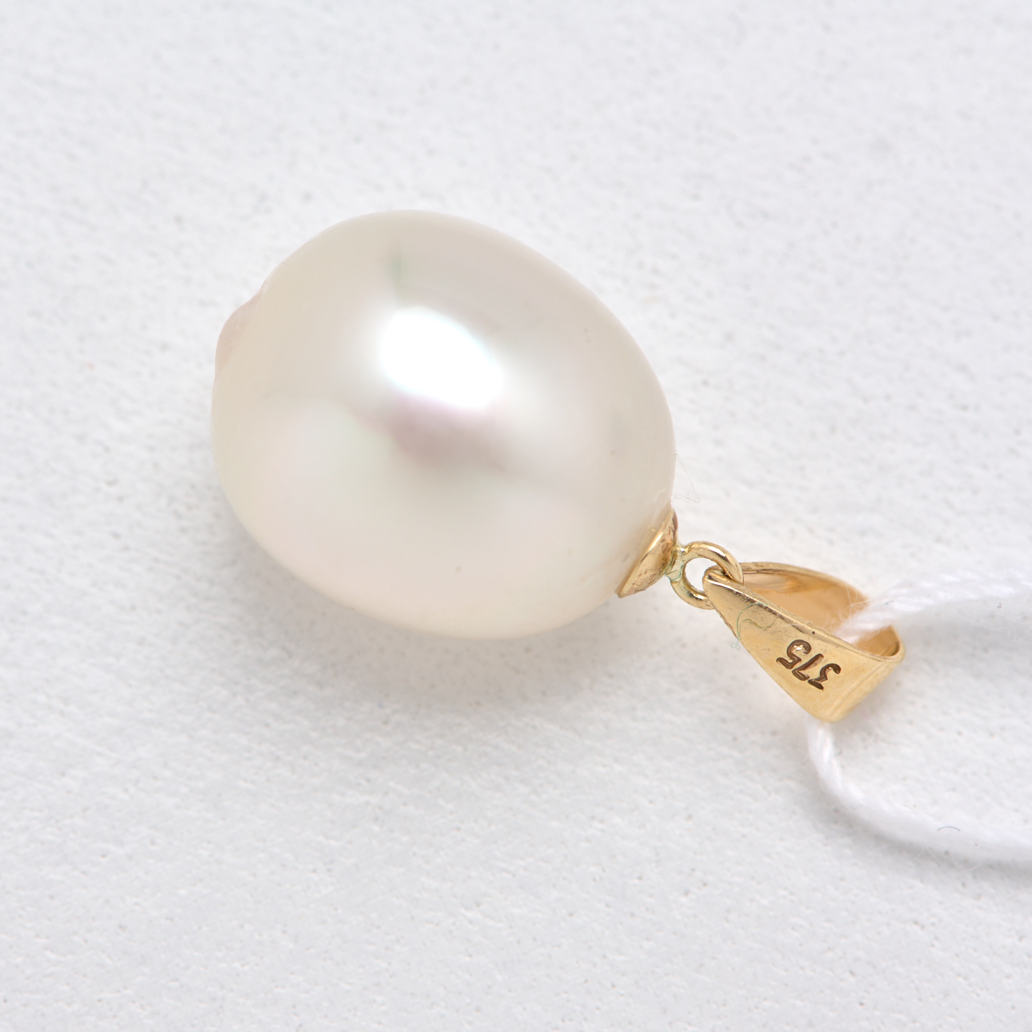 AN AUSTRALIAN SOUTH SEA PENDANT TO A BAIL IN 9CT GOLD, THE PEARL MEASURING 11MM