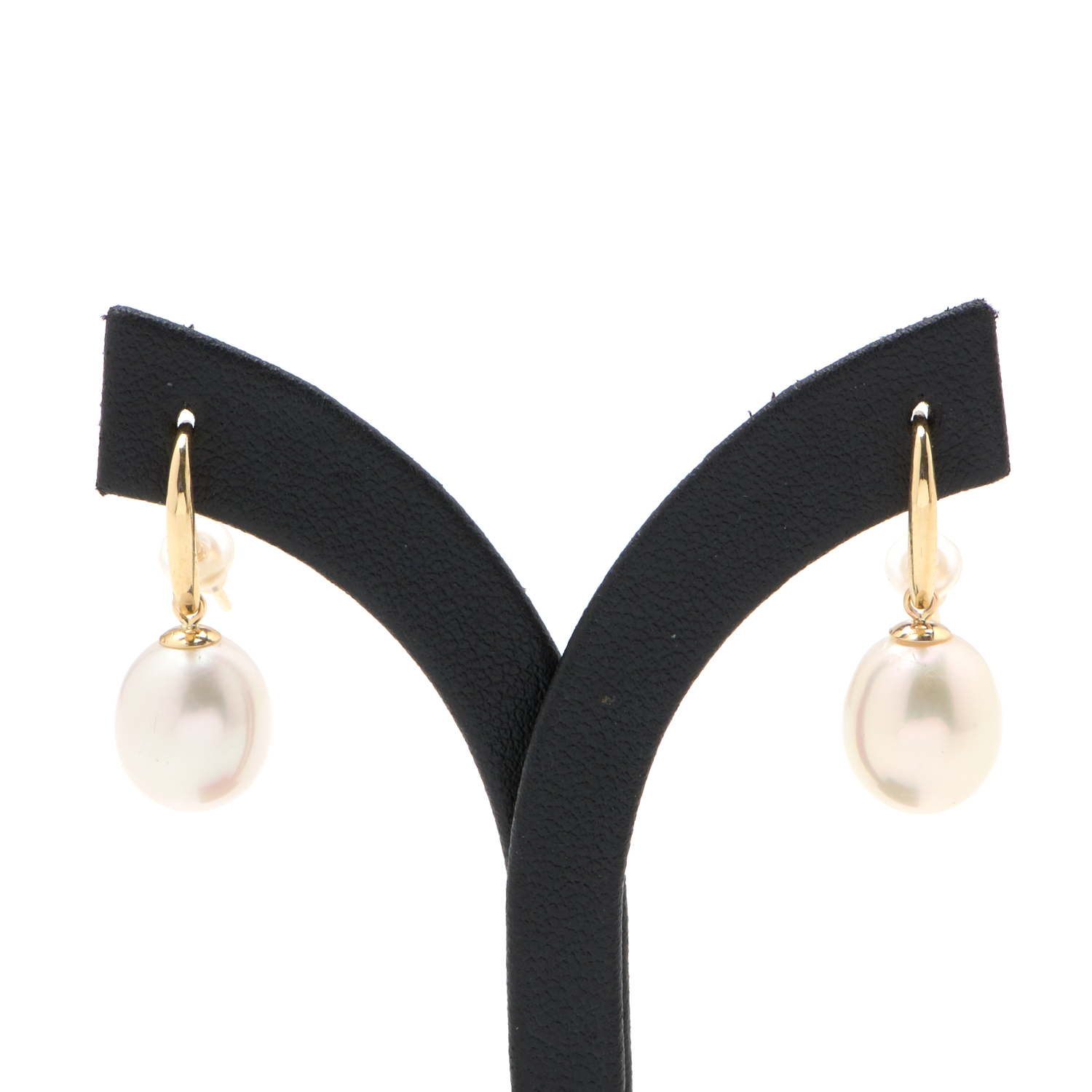 A PAIR OF AUSTRALIAN SOUTH SEA PEARL EARRINGS TO SHEPHERDS HOOKS IN 9CT GOLD, THE PEARLS MEASURING 10MM
