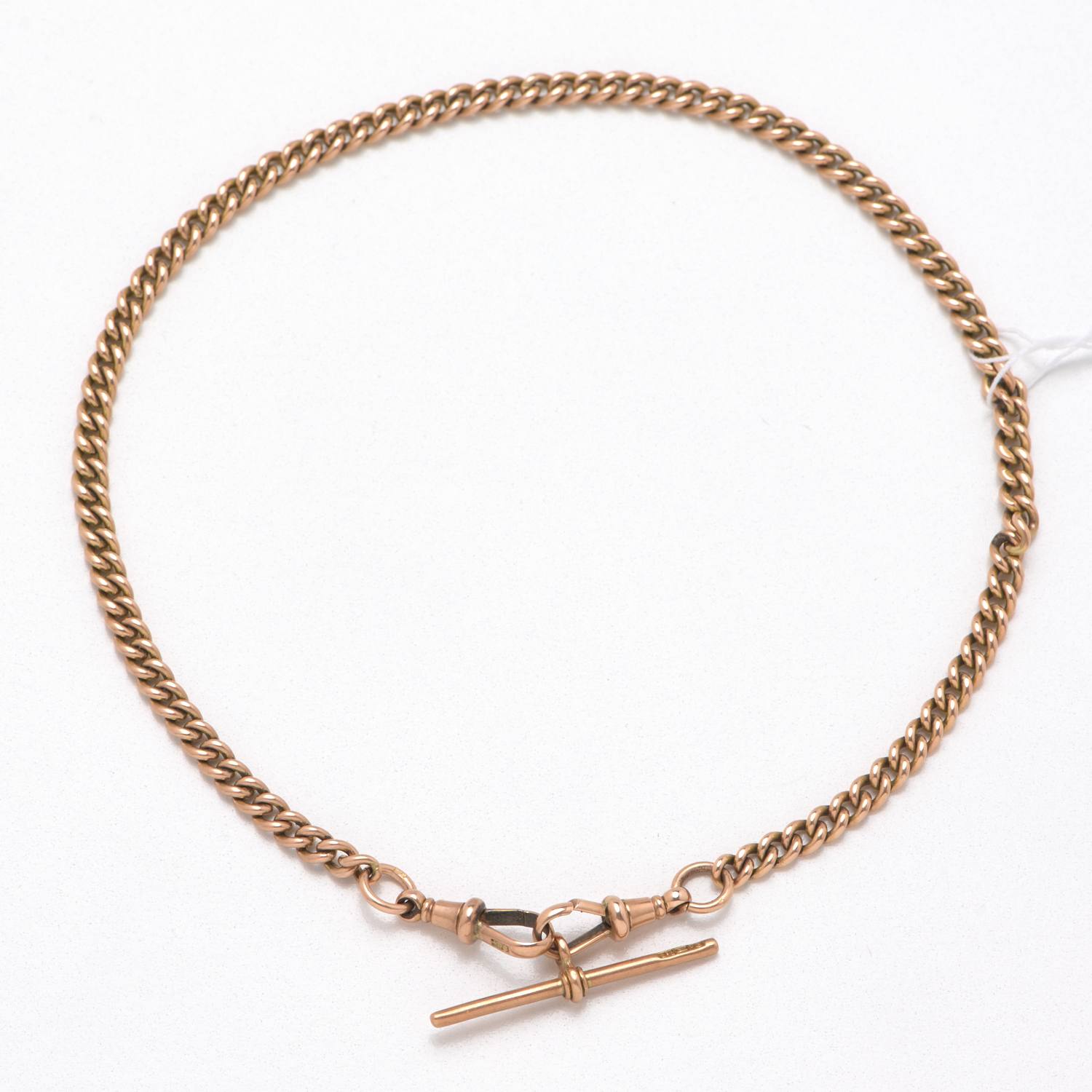 A FOB CHAIN IN 9CT ROSE GOLD, TOTAL LENGTH 375MM, 25.40GMS