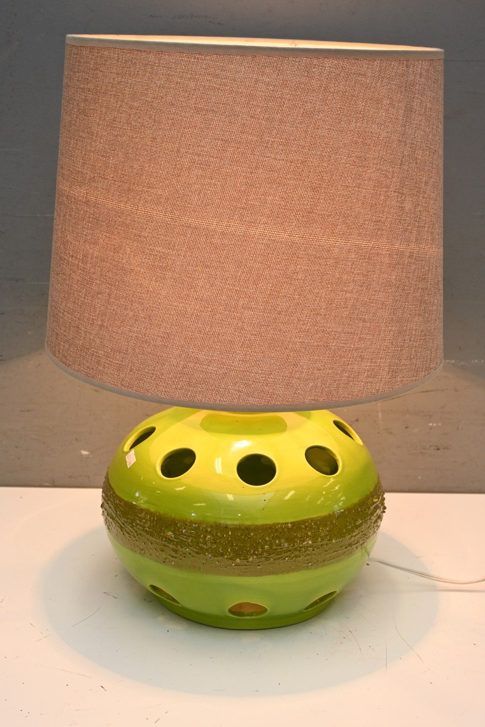 A 1960'S GREEN CERAMIC TABLE LAMP (57H X 38D CM) (LEONARD JOEL DELIVERY SIZE: MEDIUM)