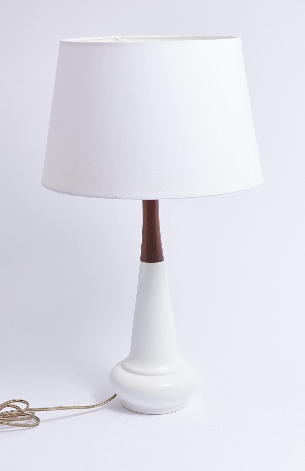 AN AUSTRALIAN MID CENTURY CERAMIC AND TEAK TABLE LAMP BY LYNDALE H.59CM, LEONARD JOEL LOCAL DELIVERY: MEDIUM