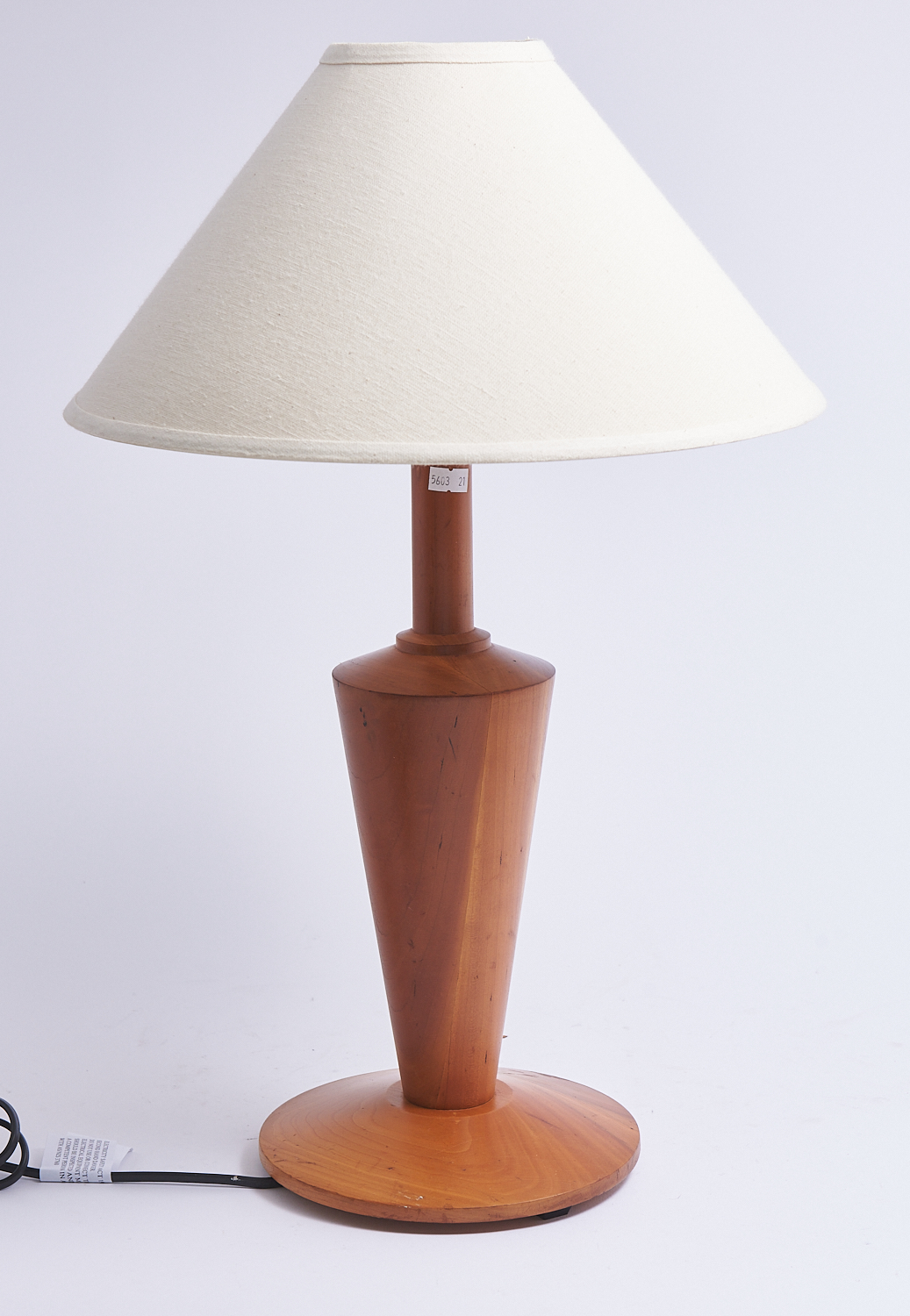 A MID CENTURY CHERRY WOOD TABLE LAMP H.59CM, LEONARD JOEL LOCAL DELIVERY: MEDIUM