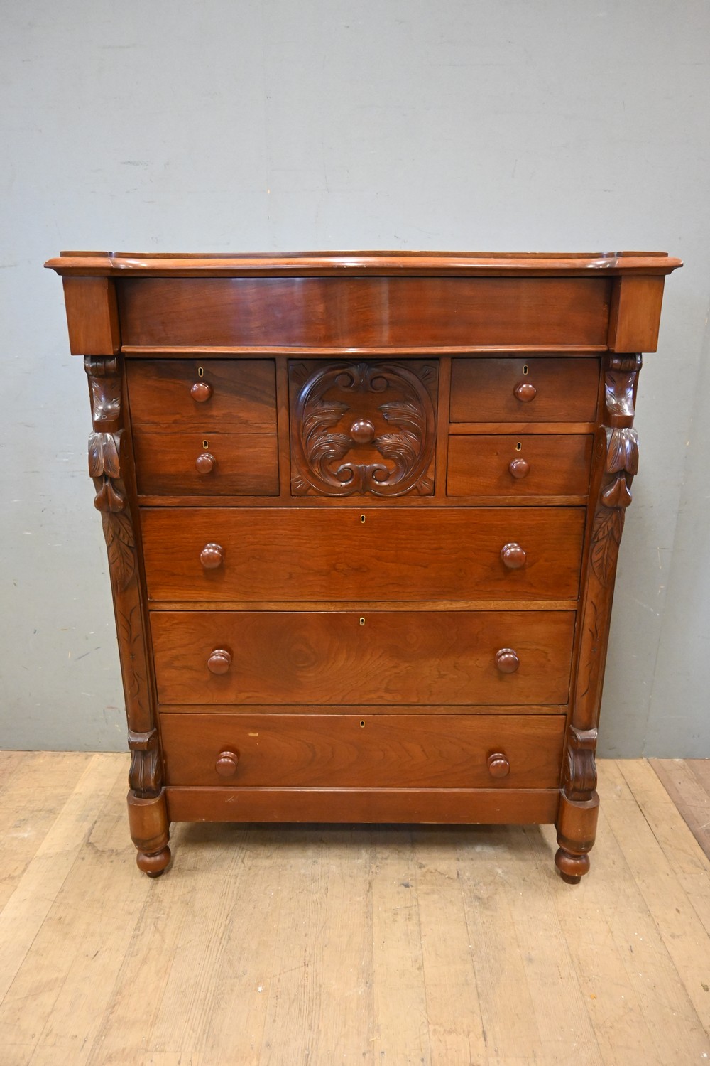 A VICTORIAN CEDAR EIGHT DRAWER TALLBOY ( 144H X 112W X 56D CM) (PLEASE NOTE THIS HEAVY ITEM MUST BE REMOVED BY CARRIERS AT THE CUSTOMER'S EXPENSE. LEONARD JOEL STAFF CANNOT ASSIST CARRYING THIS ITEM) (X-LARGE ITEM)