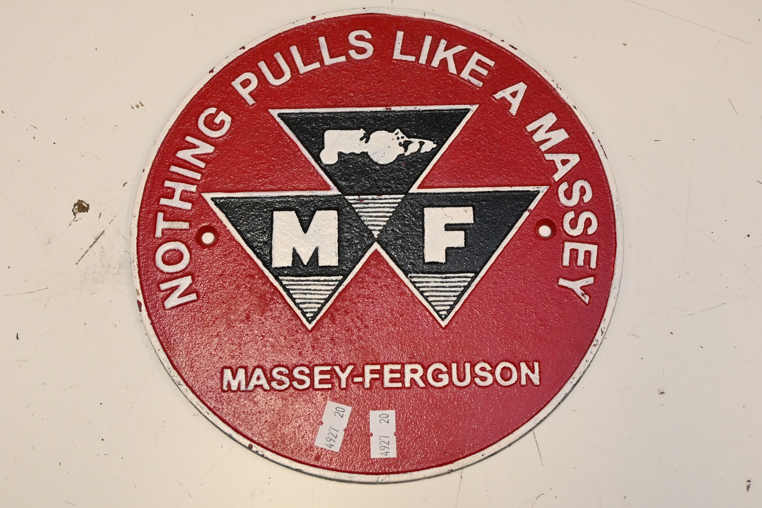 A METAL MASSEY FERGESEN SIGN (24D CM) (LEONARD JOEL DELIVERY SIZE: SMALL)